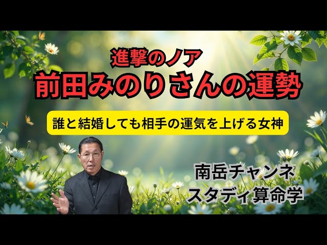 訂正です。旦那様の名前は「ヒカリ」ではなく「ヒカル」です。進撃のノアこと前田みのりさんの運勢を鑑定しました。彼女は夫星透干、夫の運をどこまでも上げる女神です
