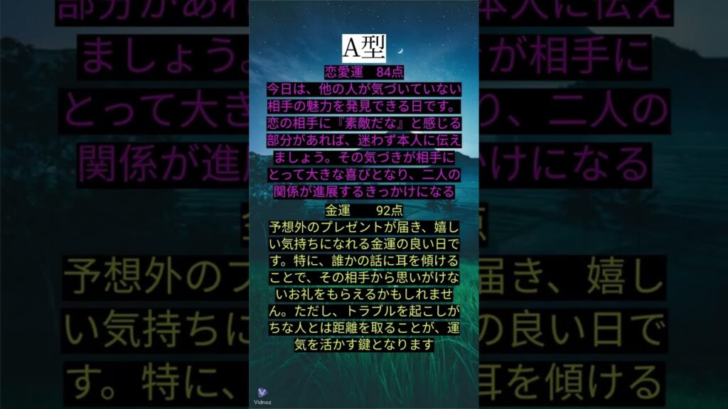 毎日0時更新!今日の血液型占い「恋愛運」と「金運」#血液型 #占い #恋愛 #金運 #ランキング #毎日 #恋人 #カップル #当たる #暇つぶし #お金 yoshihara 11か月前 通勤、通学時の電車での暇つぶしや、友達や同僚との会話のきっかけに使ってね! モチベ維持に繋がるのでイイネや登録、コメントしてくれると嬉しいです!! #血液型 #占い #恋愛 #金運 #ランキング #毎日 #恋人 #カップル #当たる #暇つぶし