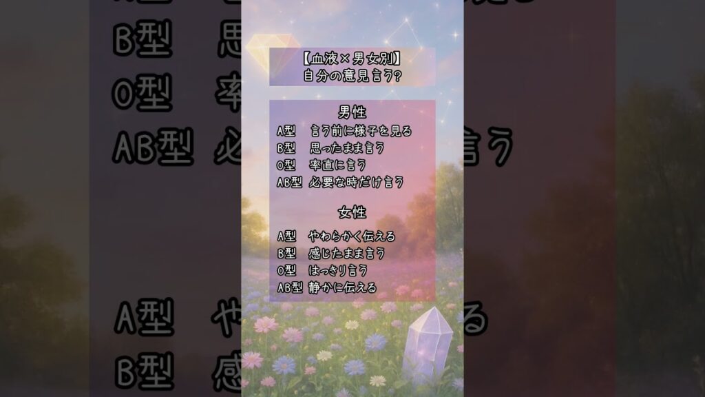 【血液型×男女別】自分の意見は言う?#shorts #恋愛 #血液型占い #人間心理 #恋愛あるある yoshihara 1日前 自分の意見を言うタイミングや強さは、人によって全然違う。 控えめ・率直・柔らかめ・静かめ、それぞれの特徴をまとめました。 #shorts #血液型診断 #性格診断 #恋愛心理 #あるある