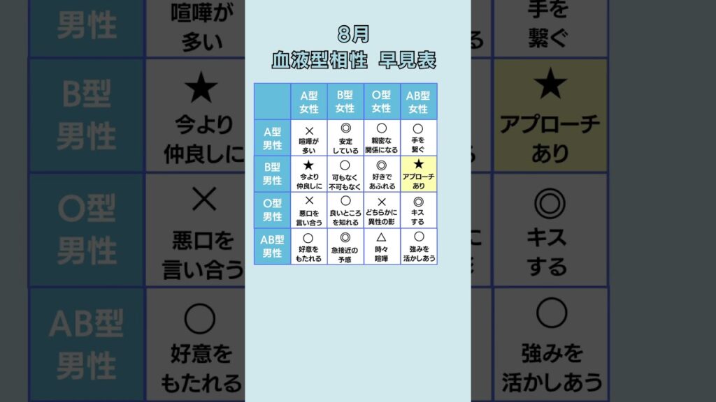 【8月】血液型相性早見表 #占い #恋愛占い