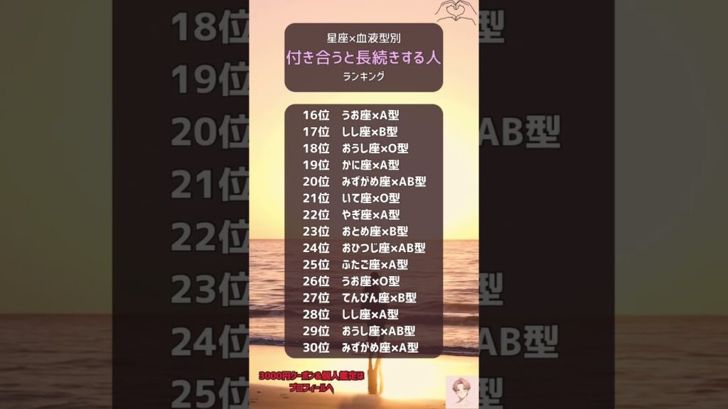 【星座×血液型】付き合うと長続きする人ランキングTOP30|恋が続く人を一気見#星座 #血液型 #相性 #恋愛 #ランキング
