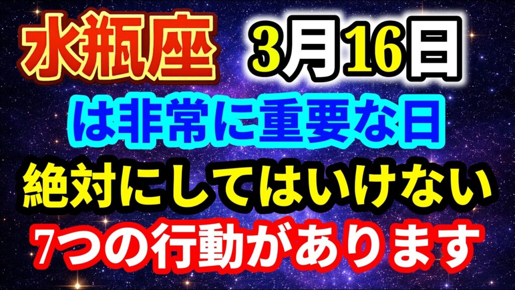 この動画では、水瓶座の方が3月16日に気をつけるべきポイントや、運気を守るための大切なヒントを詳しく解説します。