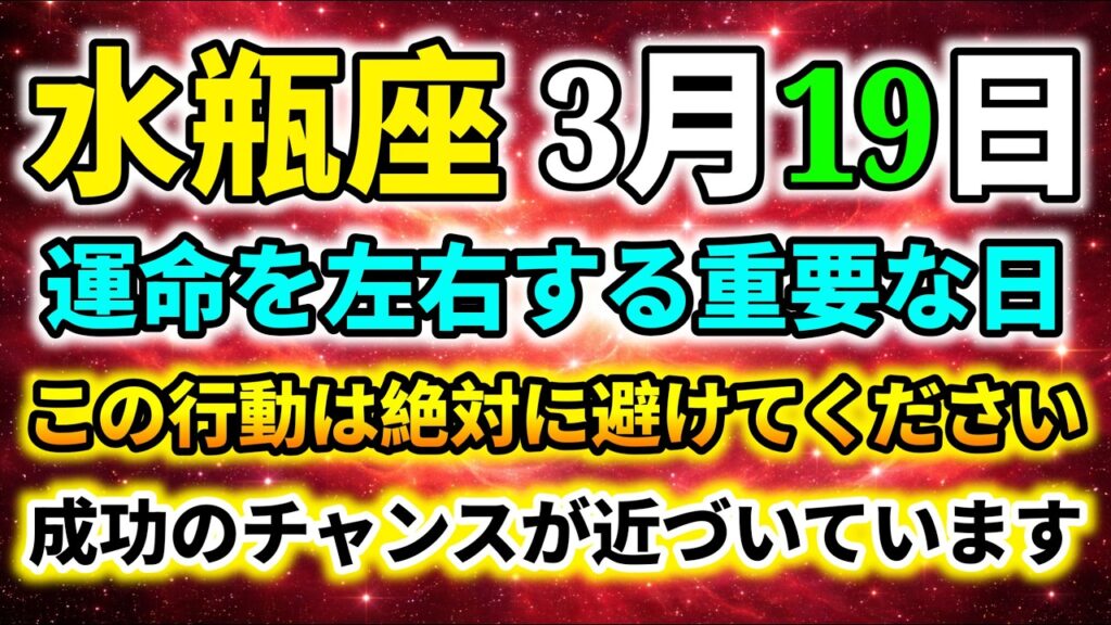 【水瓶座】3月19日 運命を左右する重要な日|絶対に避けるべき行動|成功のチャンスが近づく|今日の水瓶座