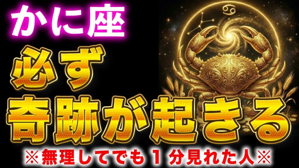 【蟹座♋️】※強制金運アップ※1分再生できたら、あなたに奇跡が訪れます。【12星座占い】