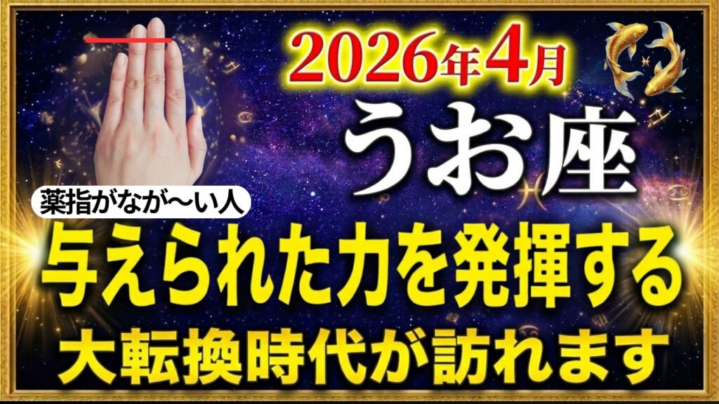 【魚座】右手の薬指が長い人あなたへ朗報です!宇宙から与えられた力で大どんでん返しが始まります【12星座占い】|占星術|3月運勢|ホロスコープ|星読み|タロット