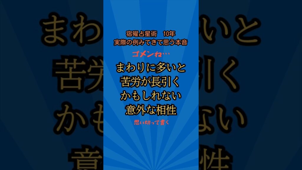 思い切って書くわ現代だと心配な相性 #宿曜占星術 #オーバーミレニアム #相性占い #栄親 #吉相性 #良い相性 #最高の相性 #貴族の相性 yoshihara 6か月前 栄親はどのような状態も「維持」させるパワーがあるので、今ハッピーな人にとっては良い相性だよ。末長い幸せをもたらしてくれる相性でもあるんだよ。 自分のまわりに多い相性や他の相性の特徴をしらべたいときは以下のサイトをみてみてね。 https://yadozu.com/